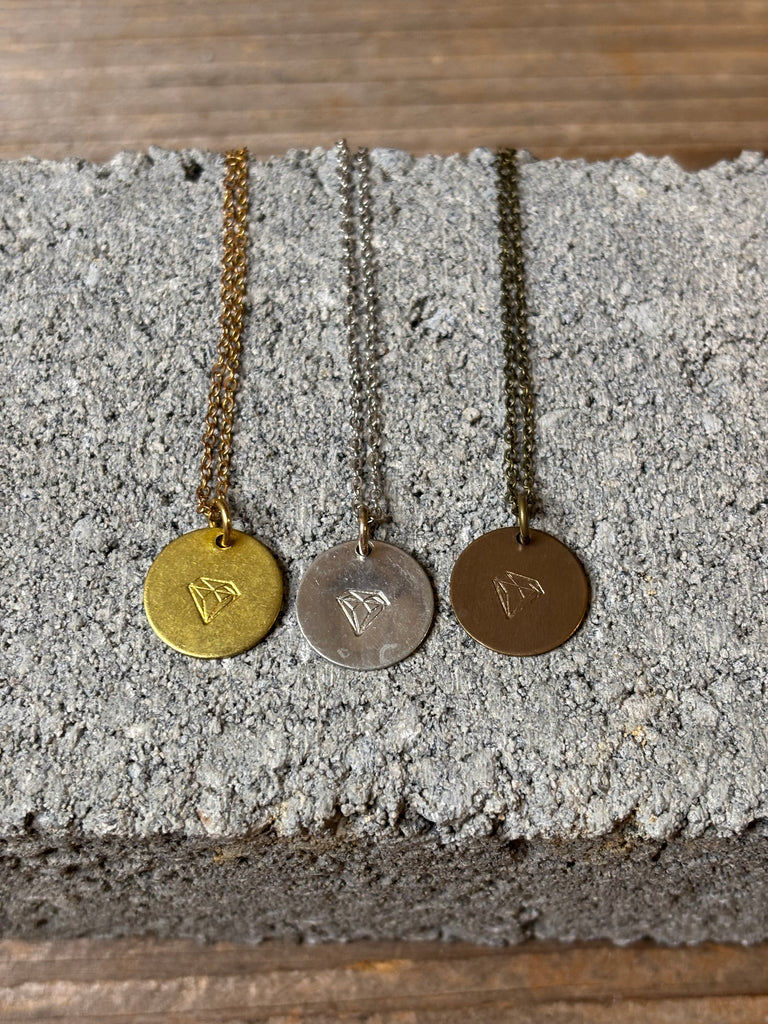Beautiful hand stamped diamond necklace. This necklace is on a 16 inch chain. Choose between brass, gold brass, or silver brass.